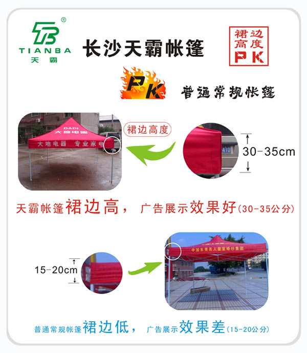 因此,長沙帳篷天霸公司始終如一貫徹的就是:使用長沙天霸帳篷的目的就是讓產(chǎn)品賣點大化!讓使用天霸帳篷的顧客成效大化。